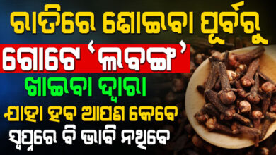 ଆଜି ଆମେ ଆପଣଙ୍କୁ କହିବୁ କି ରାତିରେ ଶୋଇବା ପୂର୍ବରୁ କେବଳ ଦୁଇଟି ଲବଙ୍ଗ ଖାଇବା ଦ୍ଵାରା ଆମ ଶରୀରକୁ କେଉଁ ସବୁ ଫାଇଦା ମିଳିଥାଏ ।…