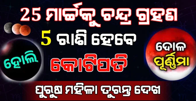 ଚଳିତ ବର୍ଷ ଦୋଳ ପୂର୍ଣ୍ଣିମାରେ ଲାଗୁଛି ଚନ୍ଦ୍ର ଗ୍ରହଣ ! ଦୋଳ ପୂର୍ଣ୍ଣିମା ଠାରୁ ଏହି 5 ଟି ରାଶି କୋଟିପତି ! Astrology