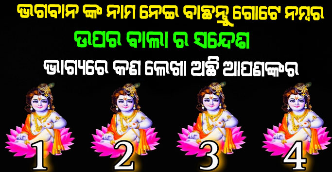 ବନ୍ଧୁଗଣ ମଣିଷ ଜୀବନରେ ପରିବର୍ତ୍ତନ ବା ଭଲ ସମୟ ଆସିବା ପୂର୍ବରୁ ଭଗବାନ କିଛି ନା କିଛି ନା କିଛି ସଂକେତ ଦେଇଥାନ୍ତି । ଯାହାକୁ ଖୁବ କମ ଲୋକେ ବୁଝି ପାରନ୍ତି । ତେବେ ଇଶ୍ଵର ଙ୍କ ସନ୍ଦେଶ ମିଳିଲେ ମଣିଷ ଜୀବନରେ କେବେ ସୁଖ ତ କେବେ ଦୁଃଖ ଆସିଥାଏ । ସମୟ କେତେବେଳେ ଚେଞ୍ଜ ହୋଇଯିବ ତାହା କେହି କହି ପାରିବେ ନାହିଁ । ତେବେ ଆଇ ଆମେ ଆପଣଙ୍କ ପାଇଁ ନେଇ ଆସିଛୁ 4ଟି ଭଗବନା କୃଷ୍ଣ ଙ୍କ ଚିତ୍ର । ସେଥି ମଧ୍ୟରୁ ଆପଣଙ୍କୁ ଯେ କୌଣସି ଗୋଟେ ବାଛିବାକୁ ହେବ । ଏହା ପରେ ଆପଣ ଜାଣିବେ ଈଶ୍ବରଙ୍କ ସନ୍ଦେଶ ଆପଣଙ୍କ ପାଇଁ କଣ ରହିଛି ।