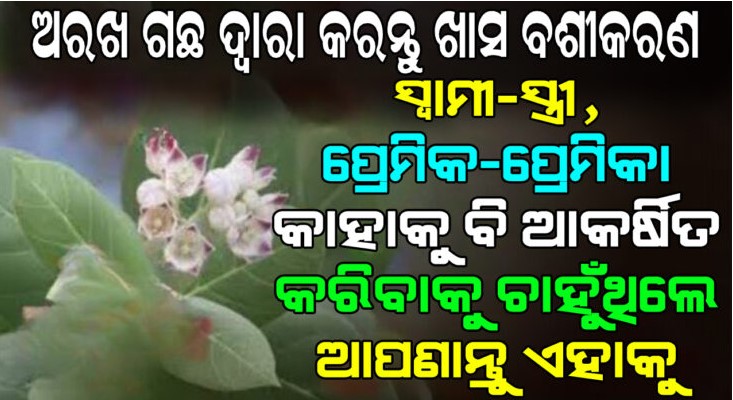 ଆଜିକାର ଲେଖାରେ ଆମେ ଅରଖ ଗଛର ପ୍ରୟୋଗ ଦ୍ୱାରା କିଛି ଖାସ ଉପାୟ ବିଷୟରେ କହିବୁ ଯାହାକୁ ଯଦି ଆପଣ କରନ୍ତି ପ୍ରେମିକ ପ୍ରେମିକା ସ୍ୱାମୀ ସ୍ତ୍ରୀ କାହାକୁବି ନିଜର ବଶ କରି ପାରିବେ । ତେବେ ସେହି ସବୁ ଉପାୟ ଦ୍ୱାରା ସୁଖ ସମୃଦ୍ଧି ଧନ ପ୍ରାପ୍ତି ମଧ୍ୟ ହୋଇଥାଏ । ତେବେ କହି ରଖିବୁ ଯେ ଧଳା ଅରଖ ଫୁଲ ଏବଂ ଗଛ ଏହିସବୁ ଉପାୟ ପାଇଁ ଅଧିକ ପ୍ରଭାବୀ ହୋଇଥାଏ । କିନ୍ତୁ ପ୍ରୟୋଗ କରିବା ପୂର୍ବରୁ ପ୍ରଥମେ ଏହି ଗଛକୁ ନିମନ୍ତ୍ରଣ ଦେଇ ଆସନ୍ତୁ ।