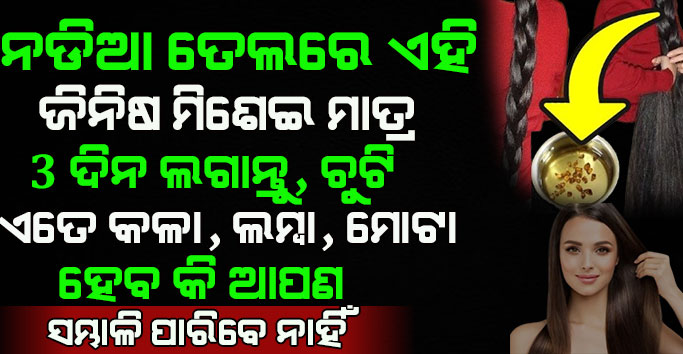ନଡିଆ ତେଲରେ କେବଳ ଏହି ଗୋଟେ ଜିନିଷ ମିଶାଇ ଲଗାନ୍ତୁ, ଘନ, ଲମ୍ବା ଓ ସୁନ୍ଦର କେଶ ପାଆନ୍ତୁ… Hair care tips