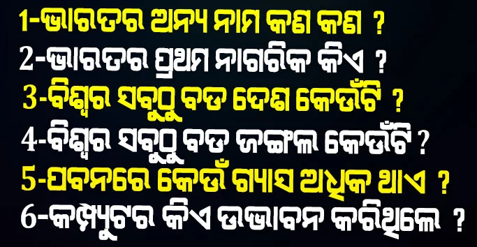 ହେଲେ ବହୁ ସମୟରେ ଆମକୁ ଅଧିକ ଜ୍ଞାନର ମଧ୍ୟ ଆବଶ୍ୟକତା ପଡିଥାଏ । ଆଜିର ଦୁନିଆରେ ବହୁ ଗୁଡିଏ କଥାମାନ ରହିଅଛି । ଯେଉଁ ଗୁଡିଏ କଥା ସବୁ ବହୁ ଲୋକଙ୍କ ପାଖରେ କିଛି ଜଣା ତ କିଛି ଅଜଣା ହୋଇ ରହିଥାଏ । ତେବେ ଚାଲନ୍ତୁ ସେହିପରି କିଛି ଆପଣ ମାନଙ୍କ ନିକଟରେ ଜଣା ଓ ଅଜଣାର କଥା ଆଲୋଚନା କରିବା । ଯାହାକି ଜାଣିବା ଛାତ୍ର ଛାତ୍ରୀ ମାନଙ୍କ ଉପଲକ୍ଷେ ବହୁତ ଜରୁରୀ ଅଟେ । ତେବେ ଏହି ସବୁ ସାଧାରଣ ପ୍ରଶ୍ନ ଅନେକ ସମୟରେ ଜରୁରୀ ହୋଇଥାଏ ଯାହାକୁ ଖୁବ କମ ଲୋକ ଜାଣିଛନ୍ତି ।
