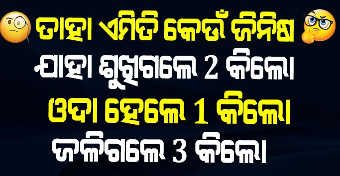 GK- ତାହା ଏମିତି କେଉଁ ଜିନିଷ ଯାହା ଶୁଖିଗଲେ 2 କିଲୋ, ଓଦା ହେଲେ 1 କିଲୋ, ଜଳିଗଲେ 3 କିଲୋ ?