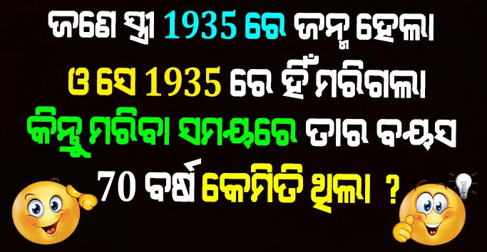 17- ଜଣେ ସ୍ତ୍ରୀ 1935 ରେ ଜନ୍ମ ହେଲା ଓ ସେ 1935 ରେ ହିଁ ମରିଗଲା । କିନ୍ତୁ ମରିବା ସମୟରେ ତାର ବୟସ 70 ବର୍ଷ କେମିତି ଥିଲା ?