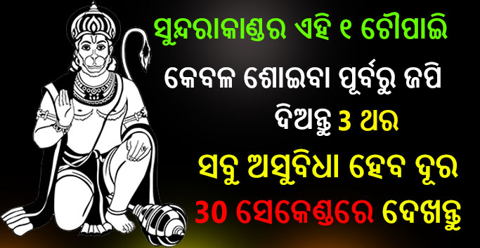 ହନୁମାନଙ୍କ ସ୍ମରଣ ମାତ୍ରକେ ସଙ୍କଟ କଟିଯାଇଥାଏ । ସଂକଟକୁ ଦୁରେଇ ଦେବାପାଇଁ ଆପଣ ଏହି ସୁନ୍ଦରା କାଣ୍ଡର ମନ୍ତ୍ରକୁ ଜପ କରନ୍ତୁ । ସେହି ମନ୍ତ୍ରଟି ହେଲା: