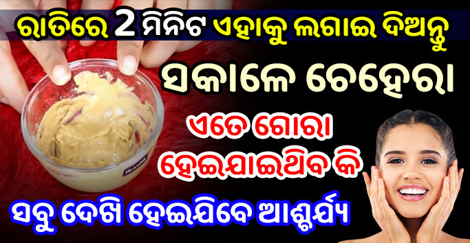 ରାତିରେ ମାତ୍ର 2 ମିନିଟ ଏହାକୁ ଲଗେଇ ଦିଅନ୍ତୁ, ସକାଳୁ ମୁହଁର ସବୁ ବ୍ରଣ ଓ କଳାଦାଗ ହେଇଯିବ ଗାୟବ, ହୀରା ଭଳି ଚମକିବ ଚେହେରା- Beauty Tips