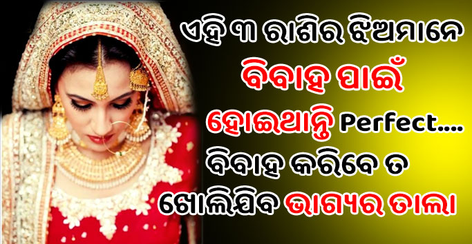 ଜ୍ୟୋତିଷ ଶାସ୍ତ୍ର ମତରେ କାହା ସହ ରାଶି ଦ୍ଵାରା ମିଳନ ହେଲେ ବ୍ୟକ୍ତି ଅଧିକ ଖୁସି ରୁହେ ଓ ତାଳମେଳ ଭଲ ରହେ । ଆସନ୍ତୁ ଜାଣିବା କେଉଁ ୩ ଟି ରାଶିର ଝିଅ ଙ୍କୁ ବିବାହ କଲେ ବ୍ୟକ୍ତି ଅତ୍ୟନ୍ତ ଭାଗ୍ୟଶାଳୀ ହୋଇଥାଏ ।