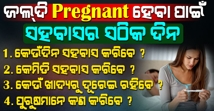 ଗର୍ଭଧାରଣ କରିବା ପ୍ରତ୍ଯେକ ମହିଳାଙ୍କ ଜୀବନର ଏକ ସୁଖଦ ଅନୁଭୂତି । କିନ୍ତୁ ଆଜିକାଲି ଅନେକ ମହିଳା ଏହି ଅନୁଭୂତିରୁ ବଞ୍ଚିତ ହେଉଛନ୍ତି । ବାରମ୍ବାର ଚେଷ୍ଟା କରିବା ସତ୍ତ୍ୱେ ଗର୍ଭବତୀ ହୋଇ ପାରୁନାହାନ୍ତି । ସଠିକ ସମୟରେ ସହବାସ ନ କରିବା ଏହାର ମୁଖ୍ୟ କାରଣ । ଗର୍ଭଧାରଣ ପାଇଁ ସଠିକ ସମୟରେ ସହବାସ କରିବା ନିତାନ୍ତ ଜରୁରୀ ଅଟେ । ପ୍ରତ୍ଯେକ ମାସର କେତୋଟି ଦିନ ଏପରି ଥାଏ ଯେଉଁ ଦିନ ସହବାସ କରିବା ଦ୍ଵାରା ଗର୍ଭଧାରଣର ଯଥେଷ୍ଟ ସମ୍ଭାବନା ରହିଥାଏ ।