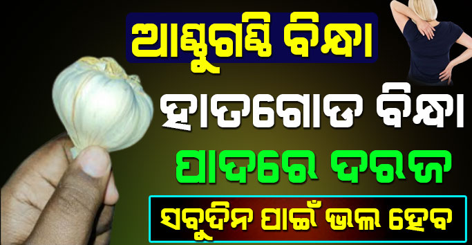 ବେଳେବେଳେ ଆମ ଆଣ୍ଠୁଗଣ୍ଠି, ଅଣ୍ଟା ଓ ଗୋଇଠିରେ ଏତେ ଯନ୍ତ୍ରଣା ହୋଇଥାଏ ଯେ ଆମକୁ ତାହା ଅସହ୍ୟ ଲାଗିଥାଏ । ବିଶେଷ କରି ବୟସ୍କ ଲୋକଙ୍କର ଏହି ସମସ୍ଯା ଅଧିକ ଦେଖିବାକୁ ମିଳିଥାଏ । ଅନେକ ଔଷଧ ଖାଇବା ଓ ଲଗାଇବା ସତ୍ତ୍ୱେ ଏହା ଭଲ ହୋଇ ନଥାଏ । ସେଥିପାଇଁ ଆପଣଙ୍କ ଏହି ସବୁ ସମସ୍ୟାକୁ ଦୂର କରିବା ପାଇଁ ଆମେ ଆଜି ଆପଣଙ୍କ ପାଇଁ ଏକ ଚମତ୍କାର ଘରୋଇ ଆୟୁର୍ବେଦିକ ଉପଚାର ନେଇ ଆସିଛୁ । ଏହାର ପ୍ରୟୋଗ ଦ୍ଵାରା ବହୁତ ଆରାମ ମିଳିଥାଏ ।